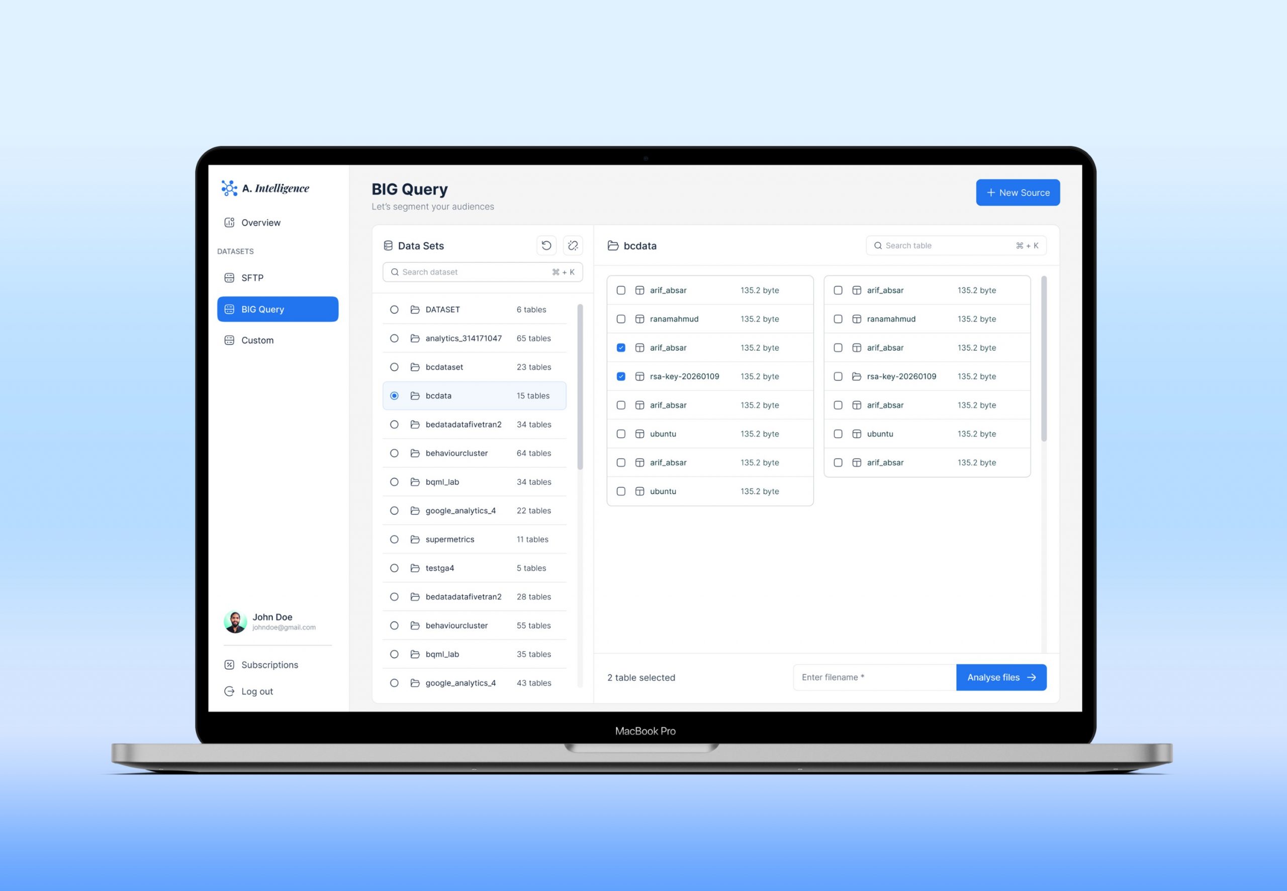 - Multi-Source Data Connection: Unified connector for local CSV, SFTP, BigQuery, and SQL databases — all managed from one platform.
