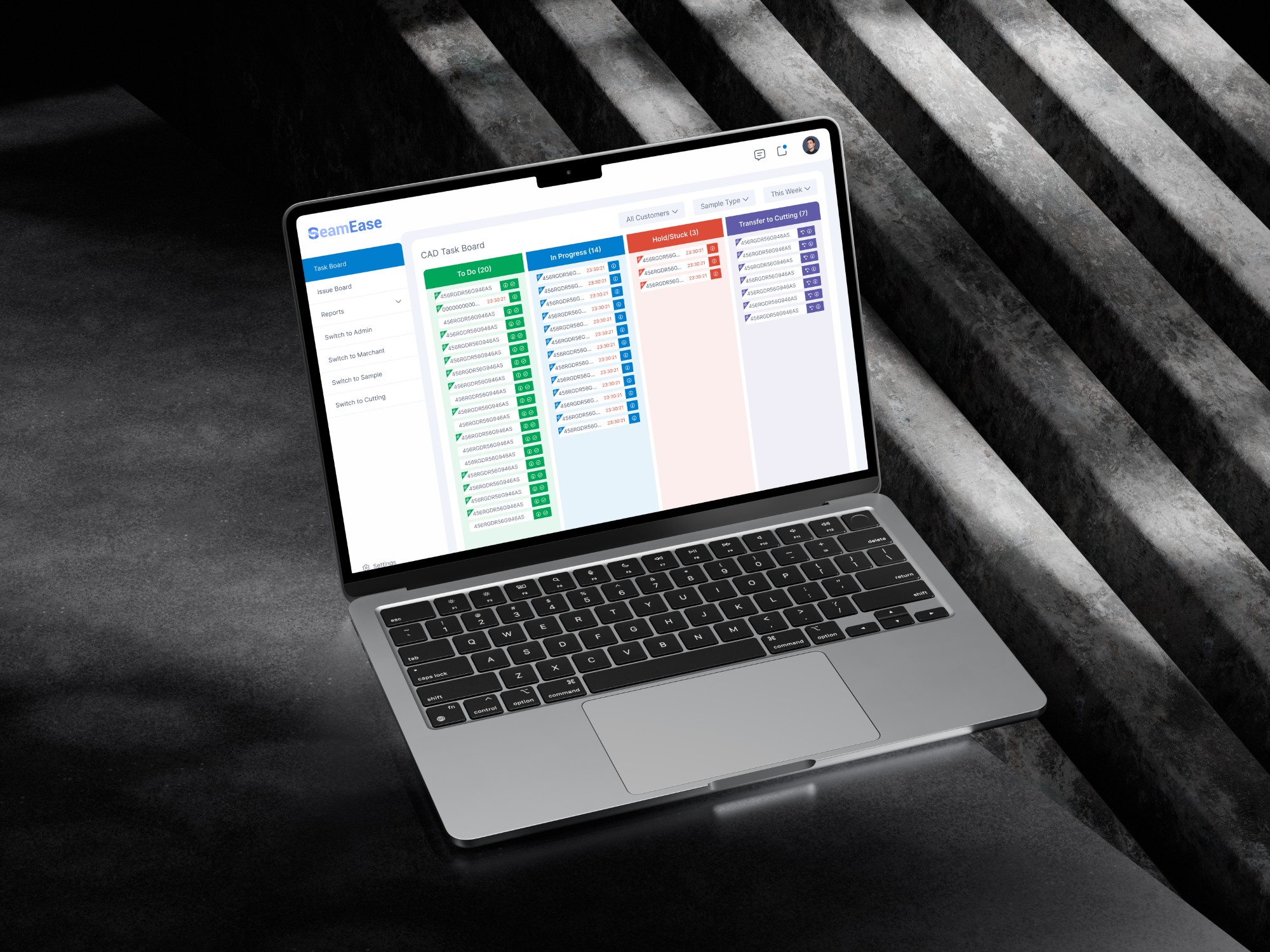 SeamEase Sample Process Solutions is a web-based platform that digitizes the entire RMG sampling and cutting workflow, from initial submission to final approval. It replaces manual processes with a centralized system that provides real-time tracking, instant issue escalation, and full process visibility.